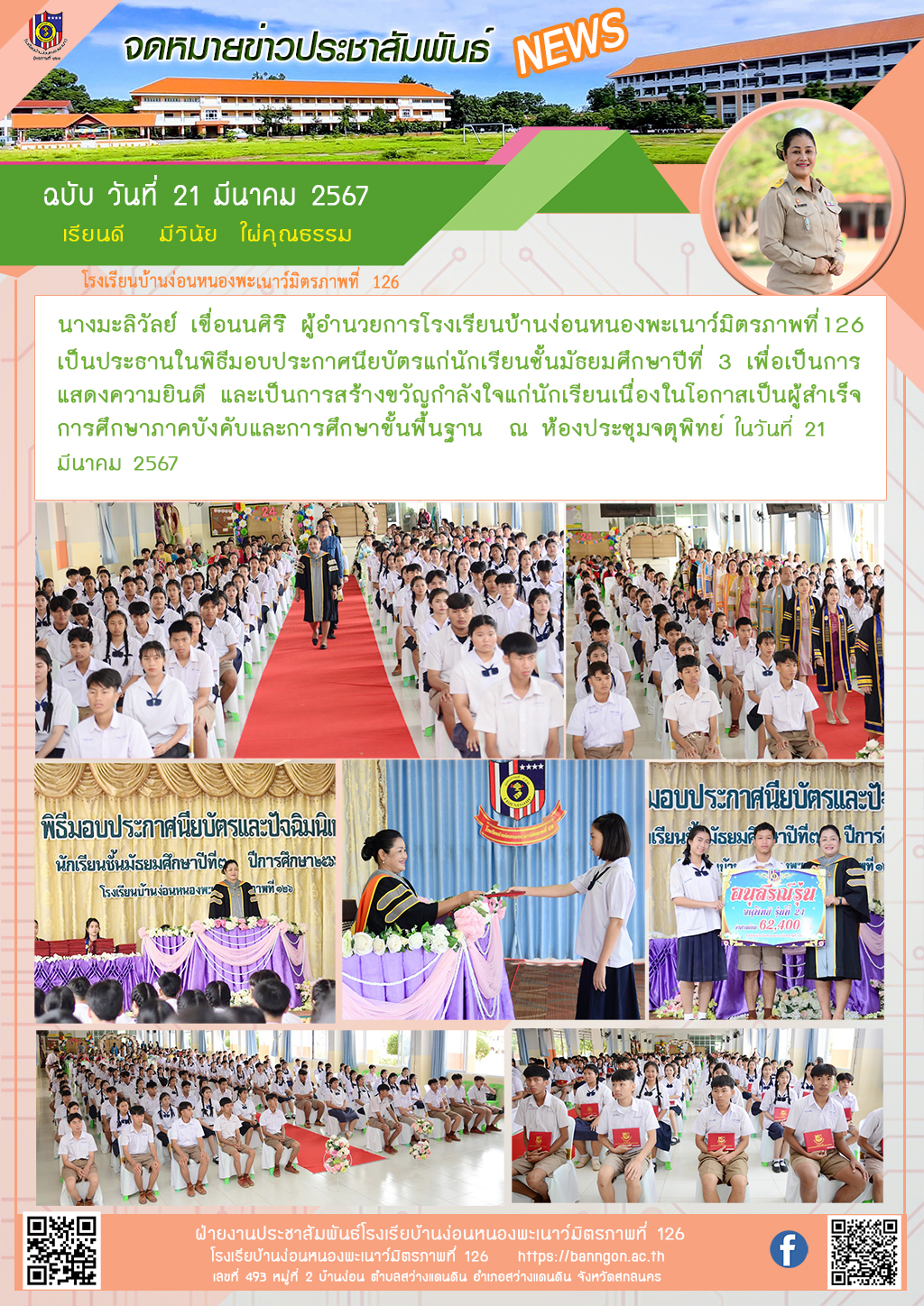 พิธีมอบประกาศนียบัตรและปัจฉิมนิเทศ ม.3