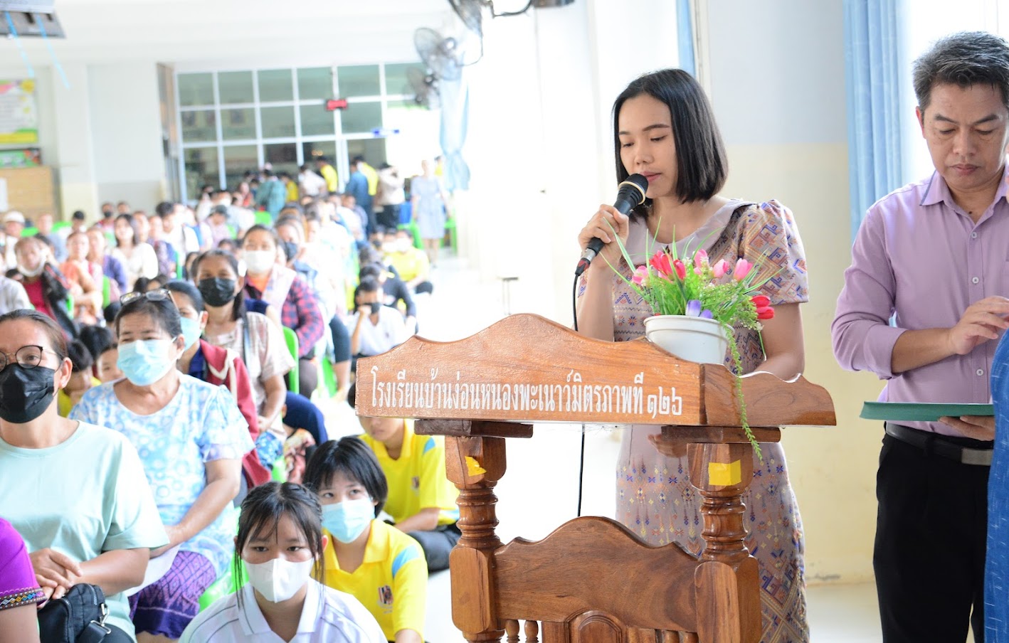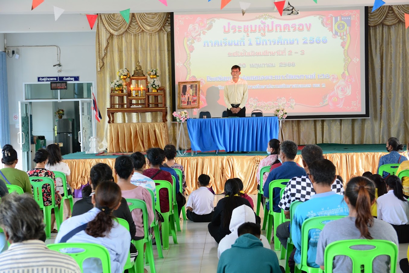 วันเสาร์ที่ 20 พฤษภาคม 2566 นายนิมิต สัตถาผล รองผู้อำนวยการโรงเรียนบ้านง่อนหนองพะเนาว์มิตรภาพที่ 126 เป็นประธานในพิธีเปิดการประชุมผู้ปกครองนักรเรียน ม.2 และ ม.3 เพื่อชี้แจง วัตถุประสงค์การจัดการประชุม